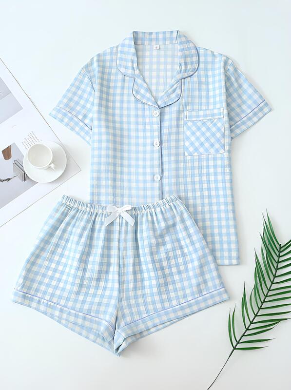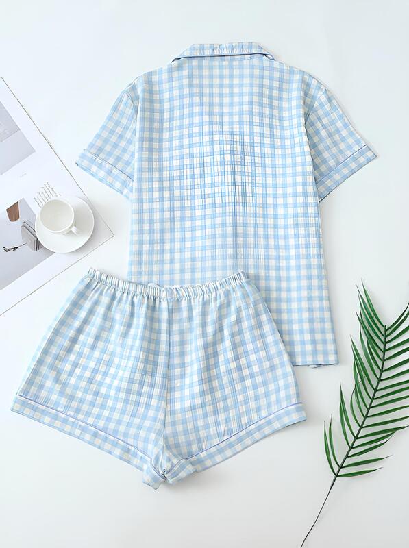 Cómoda pijama con un diseño clásico de cuadros celestes, es la prenda perfecta para esos domingos de café y lectura que no quieres que terminen.
