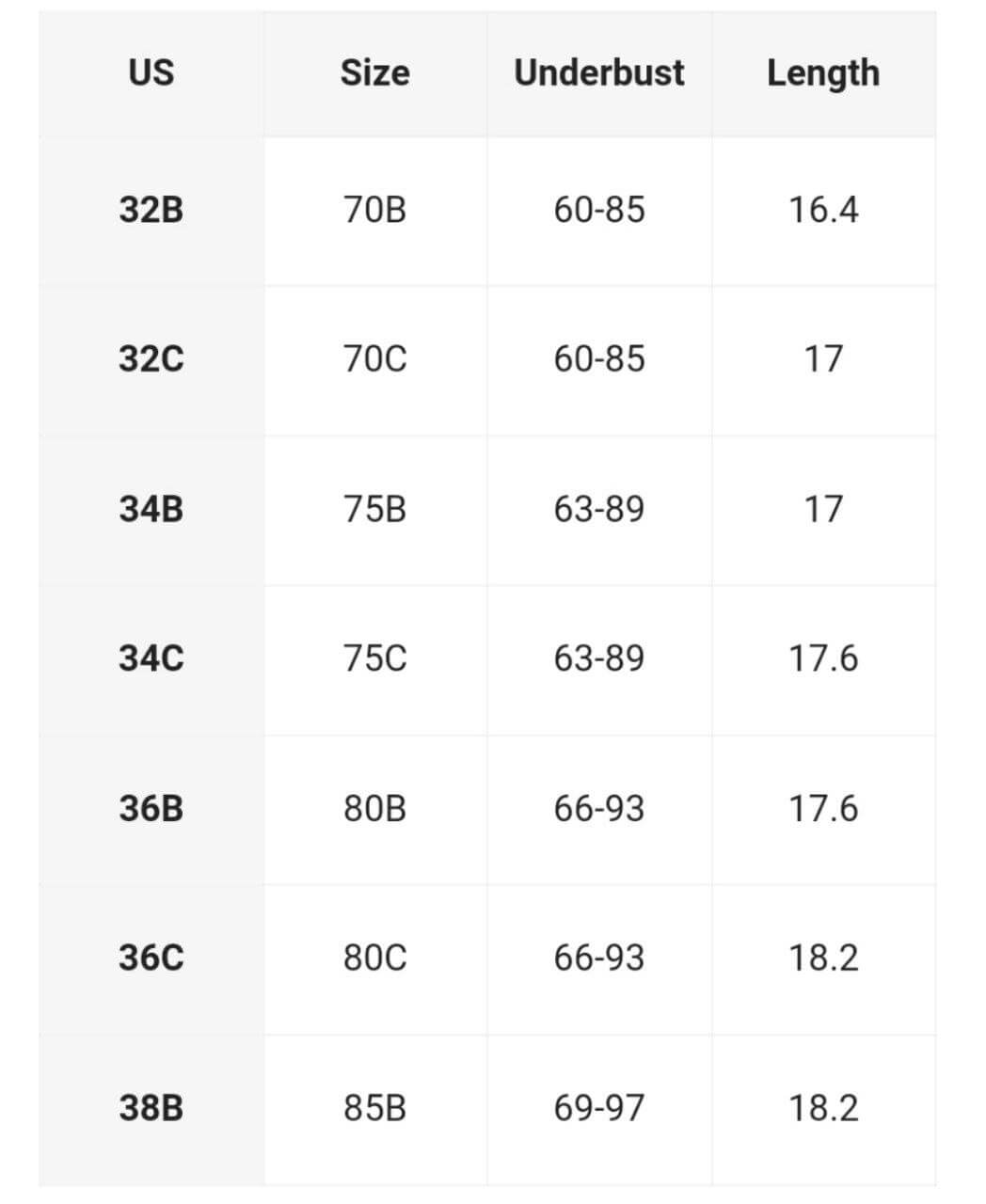 TallaContorno BustoBustoTalla US
